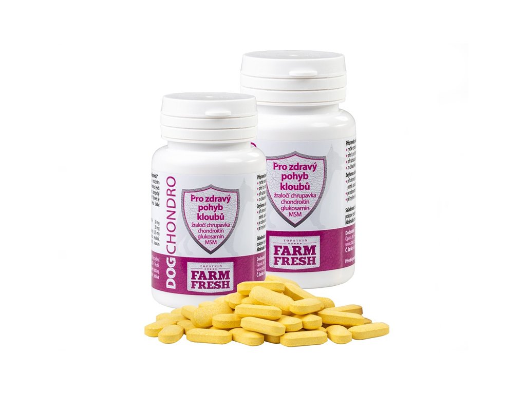 Chondroitin sulfát – po chemické stránce polysacharid, který je v organizmu zastoupen především v mezibuňečné hmotě, kde svým záporným nábojem pomáhá zadržovat vodu v chrupavce, čímž zabezpečuje její pružnost. Kromě této funkce působí protizánětlivě a analgeticky při všech artrozách. Nejvyšší podíl chondroitinu obsahují rybí chrupavky, které jsou i po chuťové stránce pro psa velmi lákavé Kurkumin – přírodní barvivo se silným protizánětlivým účinkem (v těle stimuluje přirozenou sekreci kortikosteroidů), snižuje cholesterol