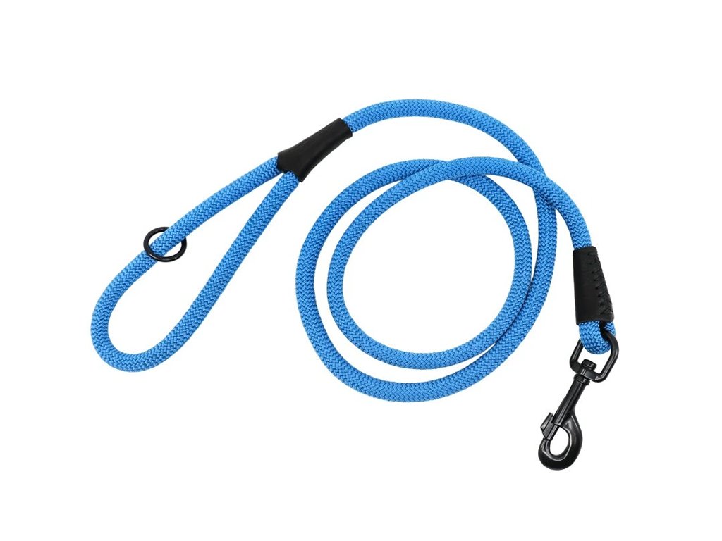 Lanové vodítko KLASICKÉ s černým kováním a kůží modré, 2 velikosti