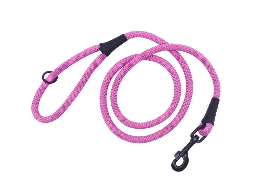 Lanové vodítko KLASICKÉ s černým kováním a kůží růžové, 2 velikosti