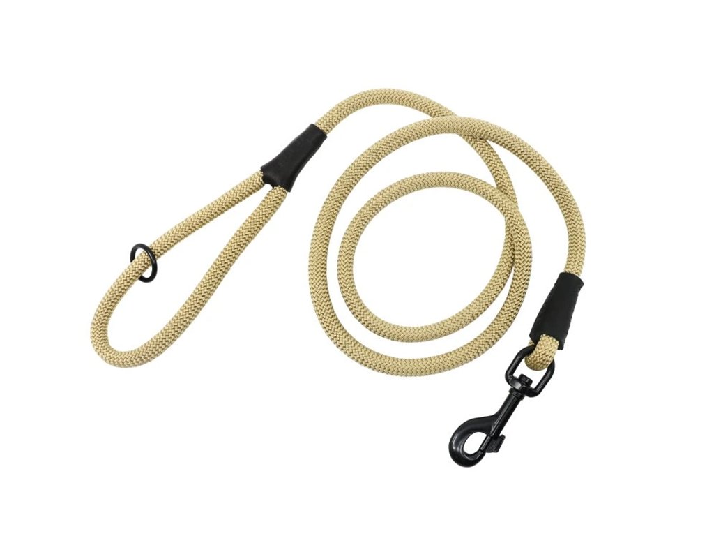 Lanové vodítko KLASICKÉ s černým kováním a kůží béžové, 2 velikosti
