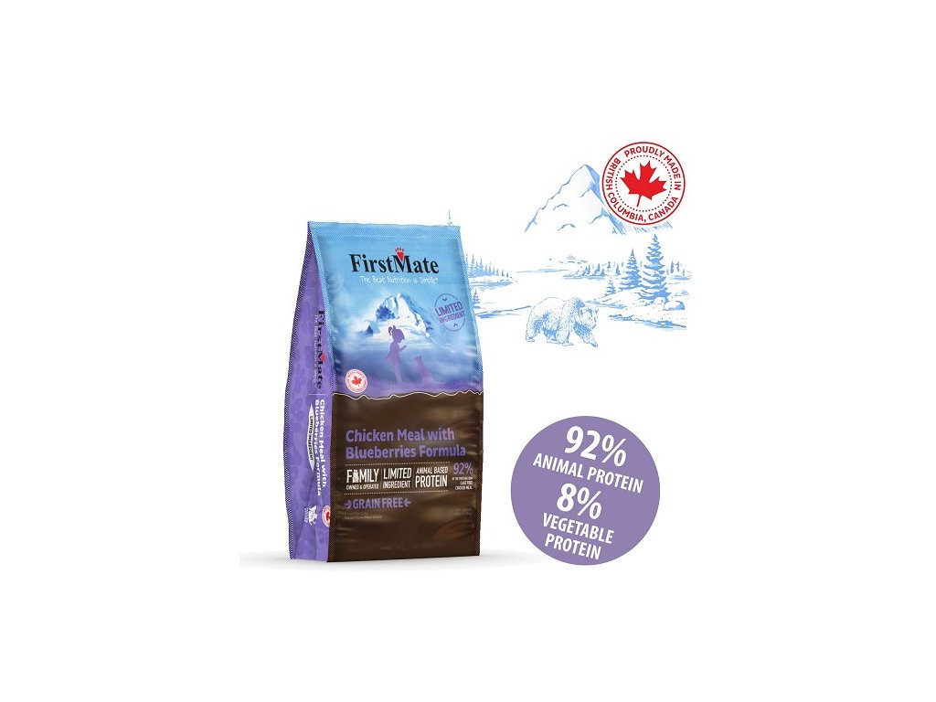 Kuřecí moučka (55 %), Burbank brambory, Norkotah brambory, živočišný tuk (kuřecí tuk konzervovaný směsí tokoferolů), celé borůvky (3 %), pivovarské kvasnice, kapusta.