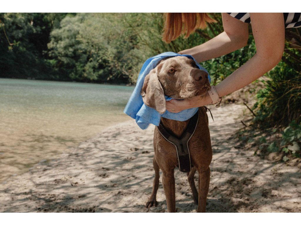 Tento ručník psa umyje i bez vody, a ještě k tomu ochladí. Stačí použít, vymáchat, vyždímat. Ale pozor - NENECHAT VYSCHNOUT!