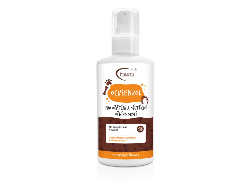 K ošetření podrážděného očního okolí a očištění srsti zabarvené slzením je určena právě jemná oční voda pro psy, kočky, koně i třeba králíky a morčata. OCUSENZOL je založený na zklidňujícím účinku HEŘMÁNKU PRAVÉHO a KOPAIVY. Kyselina askorbová (VITAMÍN C) napomůže s očištěním srsti.