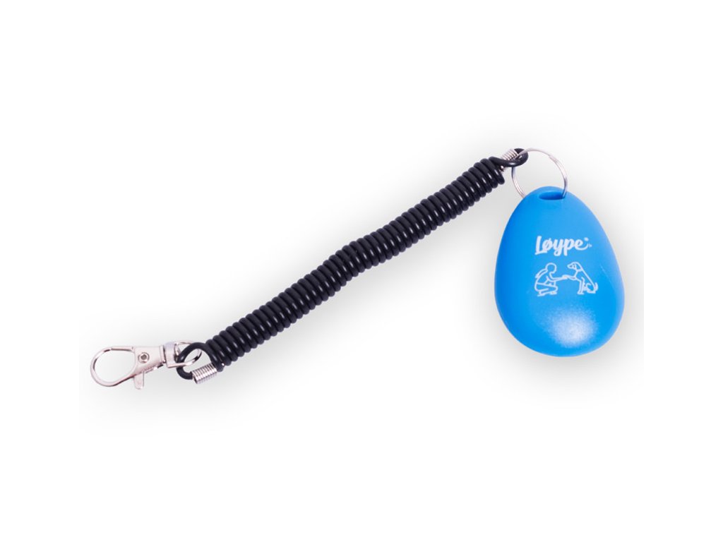 Součástí klikru je natahovací lanko s karabinkou pro připevnění na výcvikovou vestu, poutko od kalhot nebo pamlskovník. Díky tomu tuto nevelkou praktickou pomůcku nikde nezapomenete.