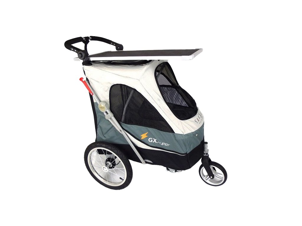 Na soutěže a psí výstavy je kočárek PetStro připraven na snadné připevnění upravovacího stolku (není součástí). Stolek se upevňuje na kočárek velmi snadno.
