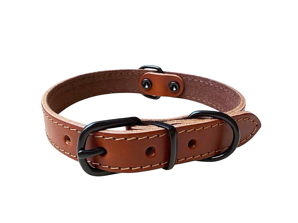 Kožený obojek hnědý s černým kováním, šíře 2 - 2,5 cm
