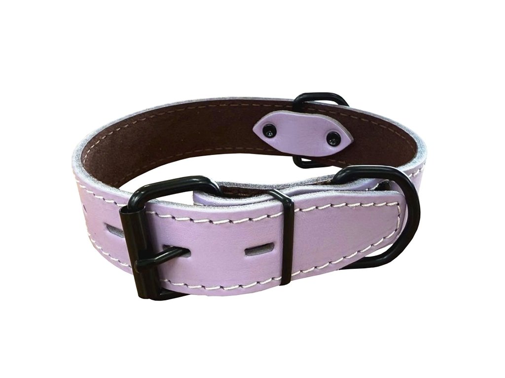 Kožený obojek lila s černým kováním, šíře 3,5-4 cm