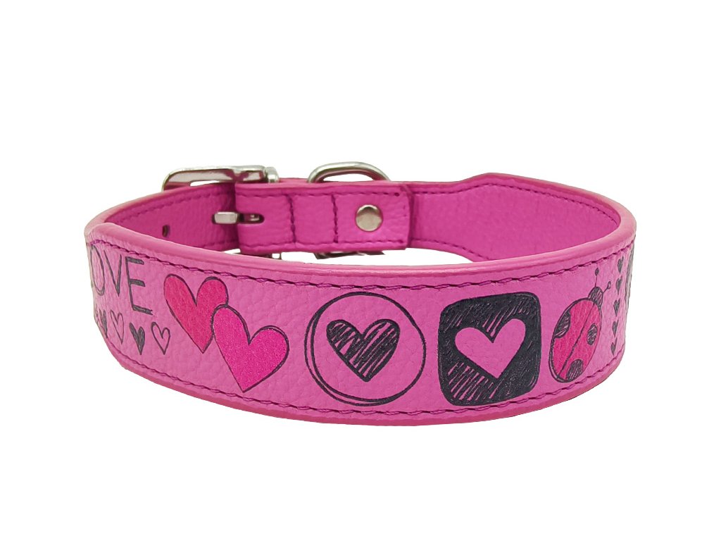 Kožený obojek LOVE pro malé až střední psy sladce růžový
