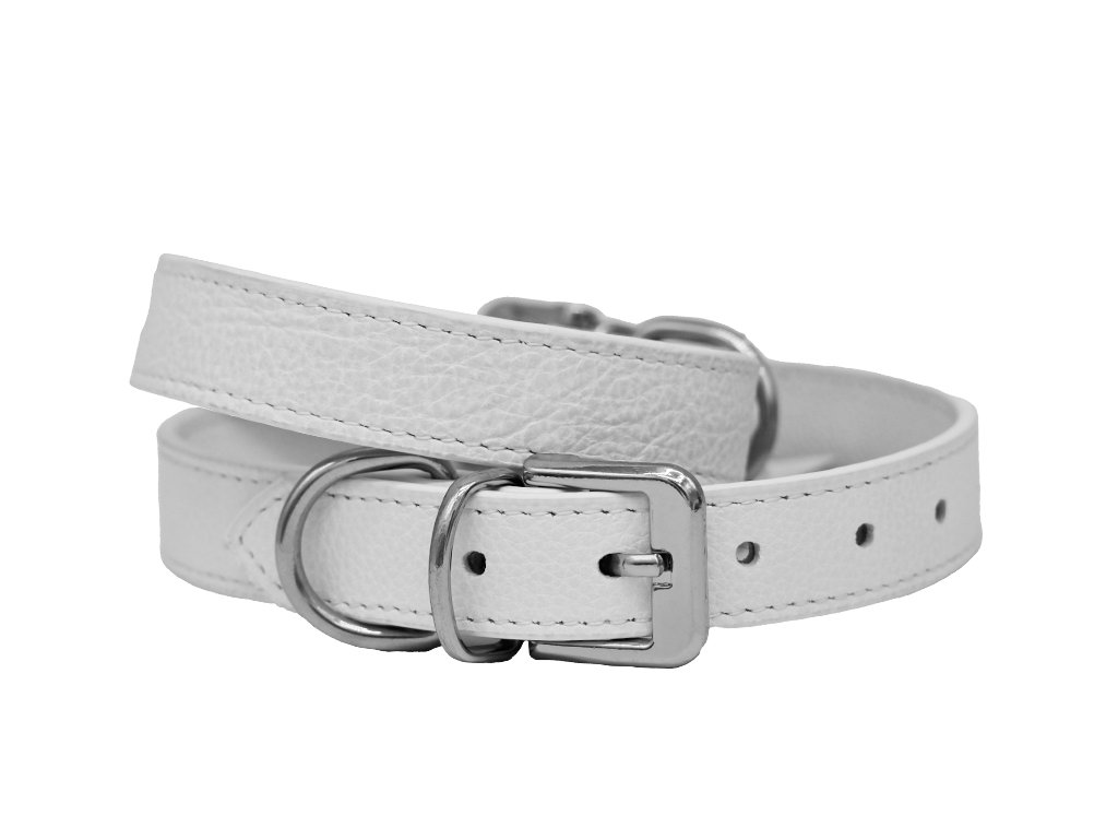Kožený obojek Orfeus pro malé až střední psy bílý