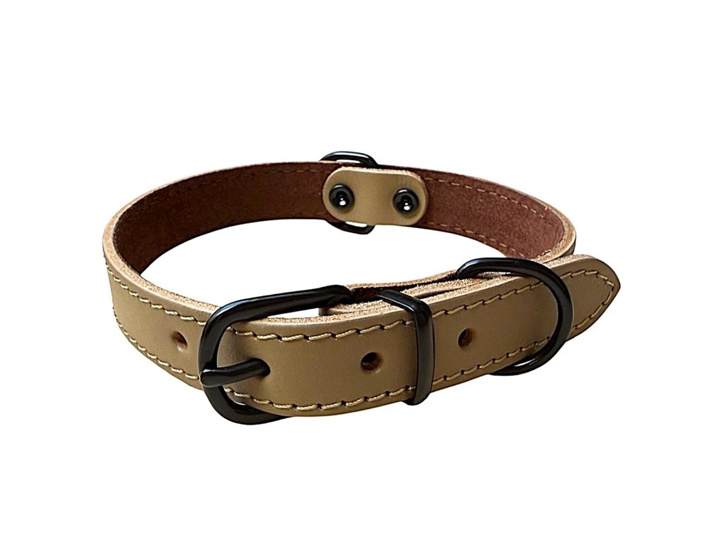 Kožený obojek šedobéžový s černým kováním, šíře 2 - 2,5 cm