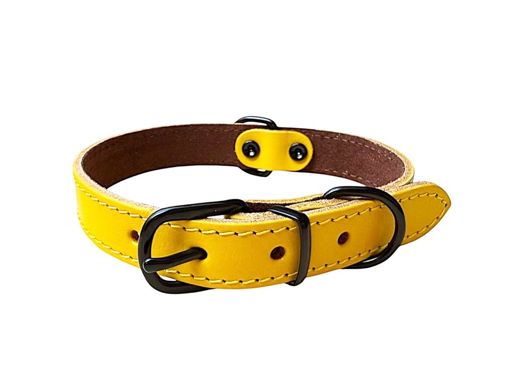 Kožený obojek žlutý s černým kováním, šíře 2 - 2,5 cm
