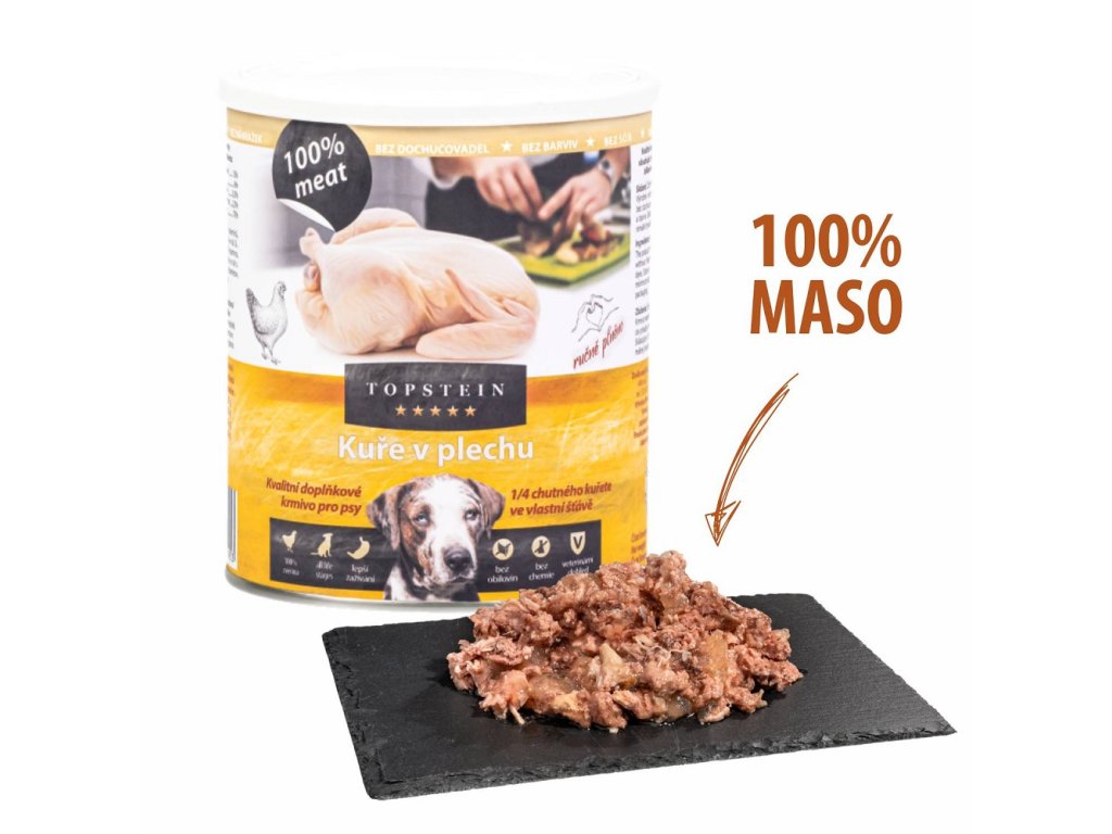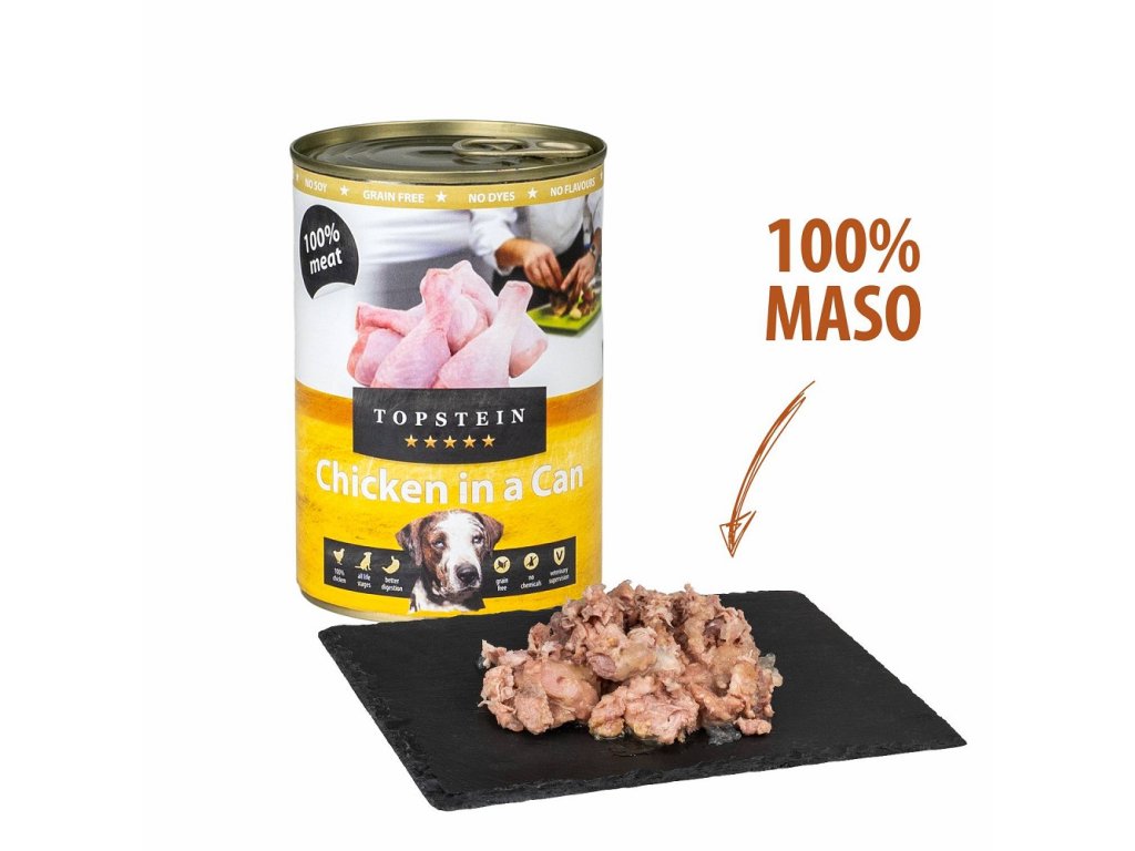 Neodolatelná konzerva pro masožravce se 100% čtvrtkou kuřete. 100% masa! Bez kompromisů! Hyperprémiové doplňkové krmivo pro psy a kočky všech plemen a stáří, bez chemie a konzervantů.