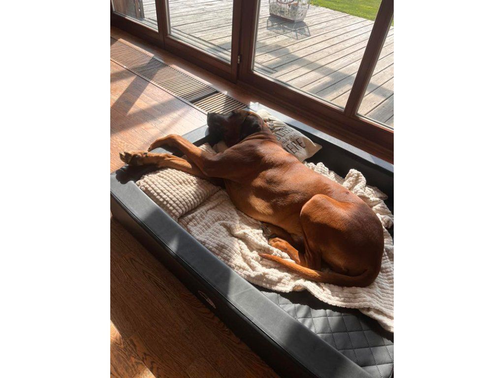 - Okraje pelíšku jsou široké, pohodlné, ale drží svůj tvar. Psi je využívají maximálně a na všech stranách.