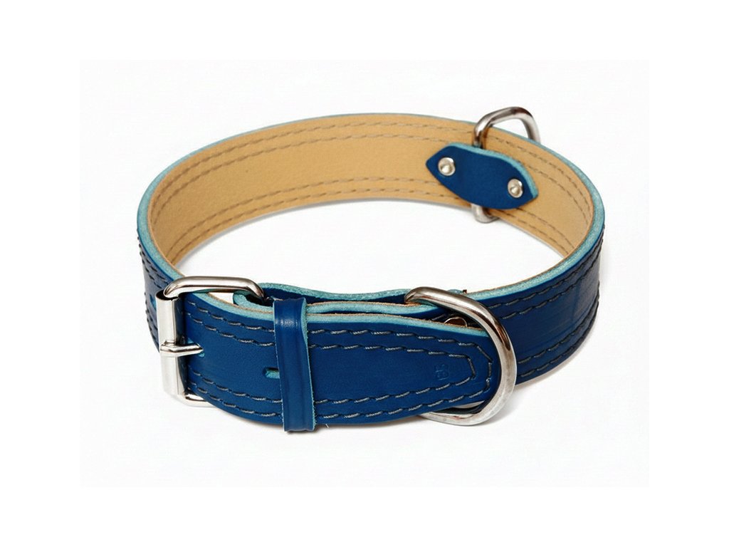 Obojek kožený modrý šířka 3,5 cm
