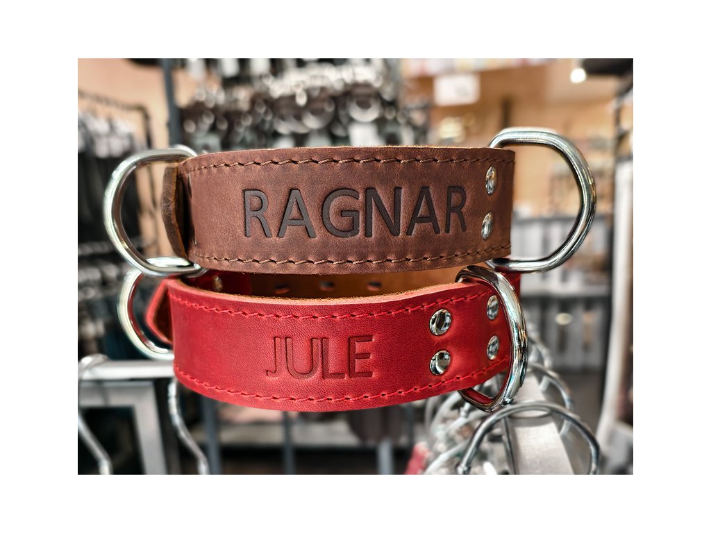 Obojek z mastné hovězí kůže uspokojí i náročné majitele psů - spojuje v sobě vynikající kvalitu provedení a luxusně vyhlížející design. Na vnitřní straně příjemná semišová kůže, obojek je nýtovaný s dvěma déčky, z dvojité lepené a prošité vrstvy. Celková tloušťka obojku je cca 5 mm.