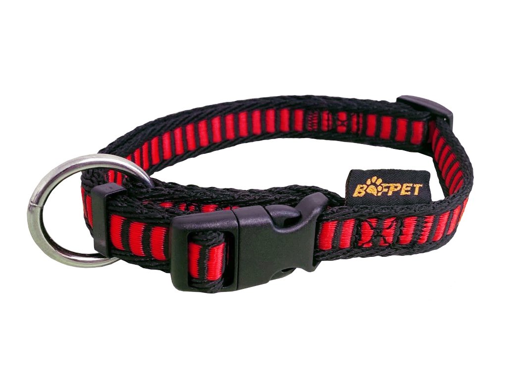 Kvalitně zpracovaný, velmi pevný a měkký nylonový obojek s motivem žebříku je vhodný pro menší, střední až obří plemena psů.