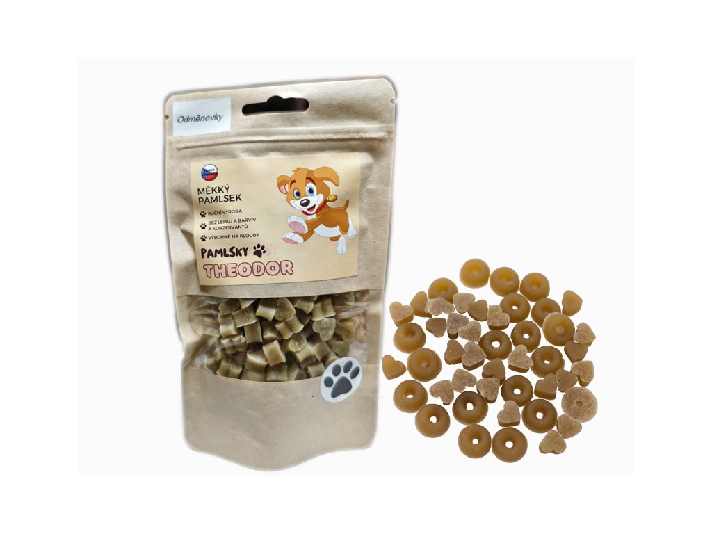 Měkké pamlsky vyrobené z 90% masa obsahují velké množství kolagenu prospěšné pro pohybové ústrojí psa. Bez lepku, chemických zchutňovadel a konzervantů.