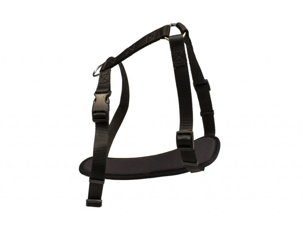 Bezpečnostní postroj do auta z jednoduchého popruhu černý je vhodný pro malá až velká plemena psů. Je pevně prošitý, má možnost nastavení obvodu krku, hrudního koše a hrudníku, s plnou, vyztuženou náprsenkou. Je vhodný na cestování se psem automobilem ve spojení s poutacím pásem, nebo i na běžné nošení. Pro bezpečné cestování dbejte na to, aby postroj psovi dobře seděl a byl dostatečně utažený.