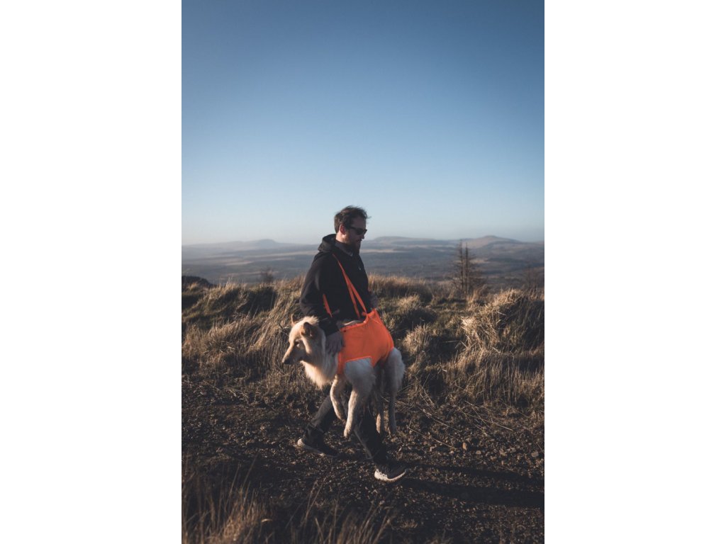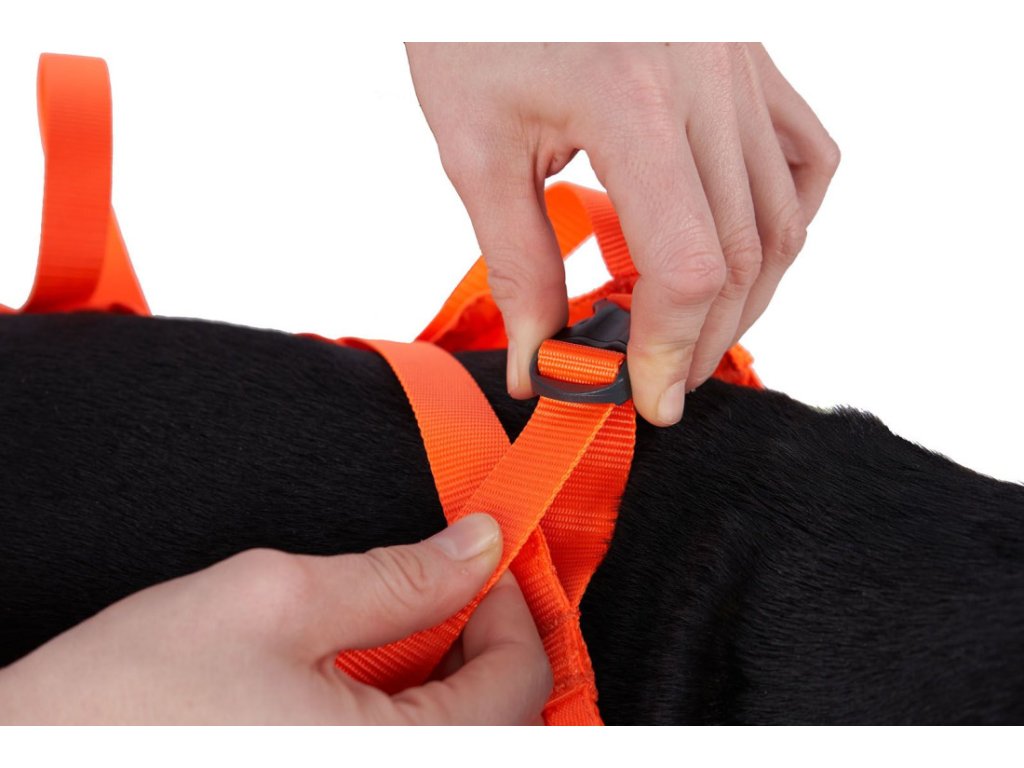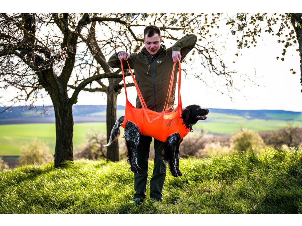 Záchranný vak Dog rescue sling je lehká a skladná pomůcka pro bezpečný transport zraněného psa zpět do bezpečí. Je určena pro nouzové situace, kdy pes nemůže pokračovat v chůzi. Lze využít také v případech, kdy se pohybujete v náročném terénu a potřebujete psa bezpečně přenést, aniž byste ho nesli v náručí a měli tak volné ruce.